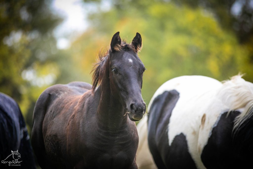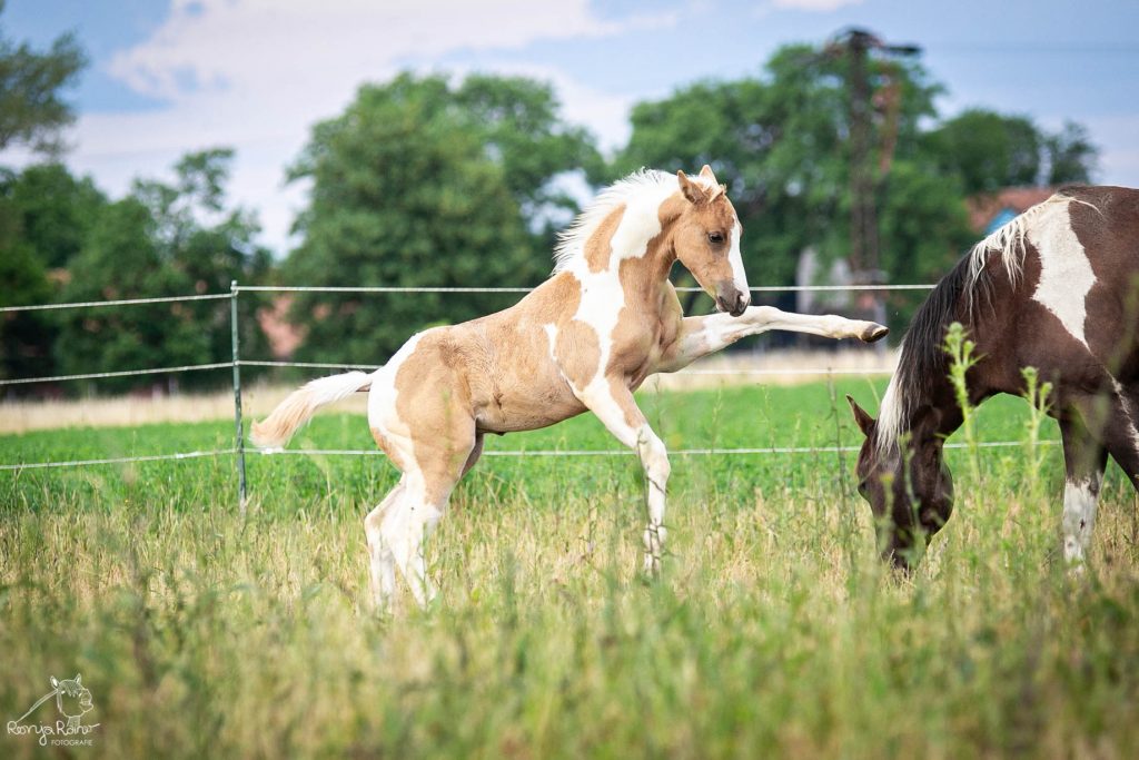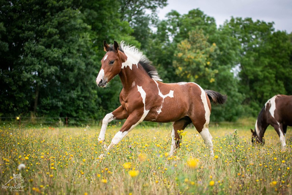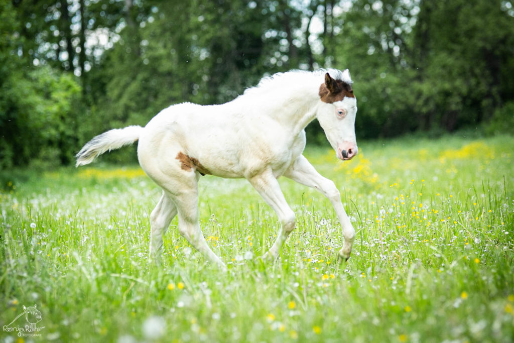 Valea, deren Name ebenfalls aus dem Indianischen stammt und „Farbe des Herbstes“ bedeutet, fällt sofort durch ihre vielen Spots im Gesicht auf. Mit ihrem aufgeweckten Wesen trägt sie nicht ohne Grund den Spitznamen „Pippi Langstrumpf“. In einigen Jahren wird auch sie unsere Zucht als Zuchtstute bereichern.